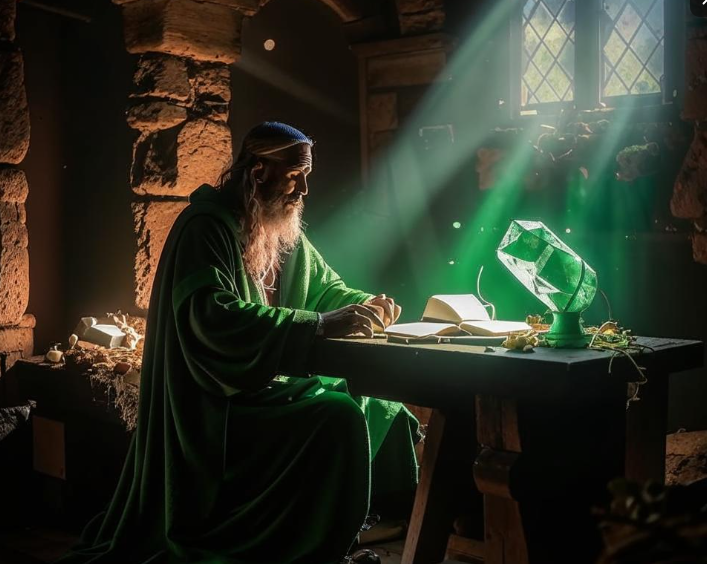 В келье монастыря Ярроу царил тот особый, густой сумрак, который накапливается за долгие часы чтения и лишь к ночи становится окончательно непроглядным. Преподобный Беда, отложив перо, потянулся к единственному предмету на столе, не имевшему отношения к пергаментам, — небольшому, чуть мутному кристаллу. Его прислал брат-миссионер из далёкой Аквилеи с загадочными словами: «Камень воды и света, зовётся бериллом».